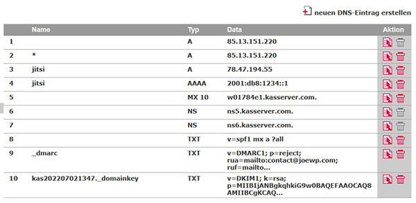 Im KAS (technische Verwaltung) unter Tools -> DNS Einstellungen findest du dann einen Eintrag ähnlich dem im obigen Bild.