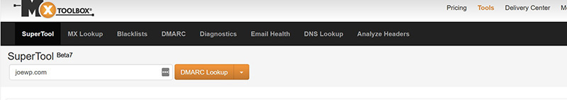Wenn du dir nicht sicher bist, ob du einen DMARC-TXT-Eintrag auf deiner Website eingerichtet hast, kannst du einen DMARC-Checker wie MXToolbox verwenden. Damit kannst du deine DNS-Einträge scannen.