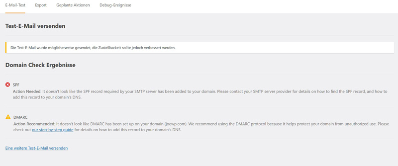 Auf unserer Website joewp.com ist unser fertiger DMARC-Eintrag wie folgt: