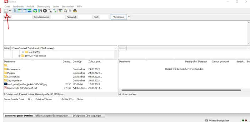 Wir verwenden FileZilla für dieses Tutorial. Falls du dich für ein anderes Tool entschieden hast, sei unbesorgt. Die Schritte sind ähnlich, egal welchen FTP-Client du nutzt.