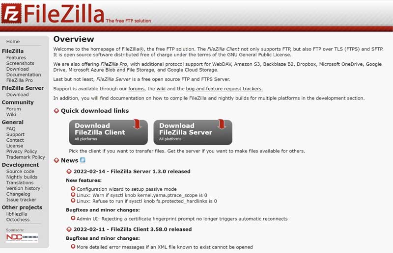 Nachdem du das Backup deiner Website erstellt hast, installiere FileZilla auf deinem Rechner. Besuche die Website von FilZilla und benutze den Downlad für dein Betriebssystem.